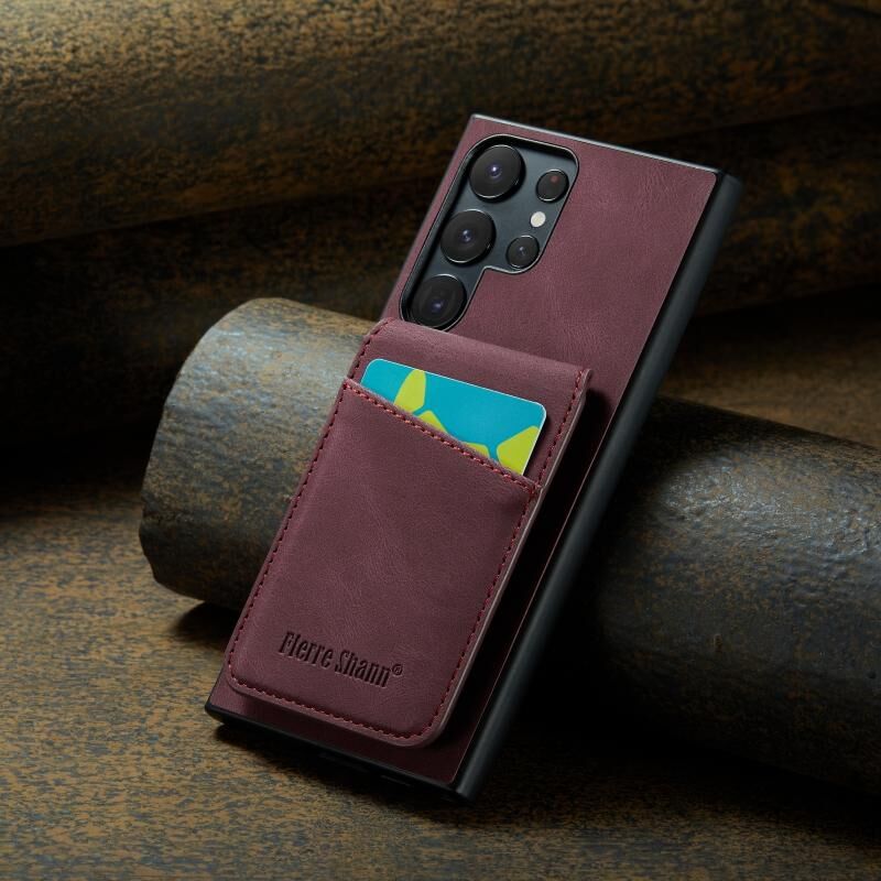 Για Samsung Galaxy S24 Ultra 5G Fierre Shann Crazy Horse Κάτοχος κάρτας κάτοχος πίσω κάλυμμα PU υπόθεση τηλεφώνου (κόκκινο κρασί) (Κρασοκόκκινο)