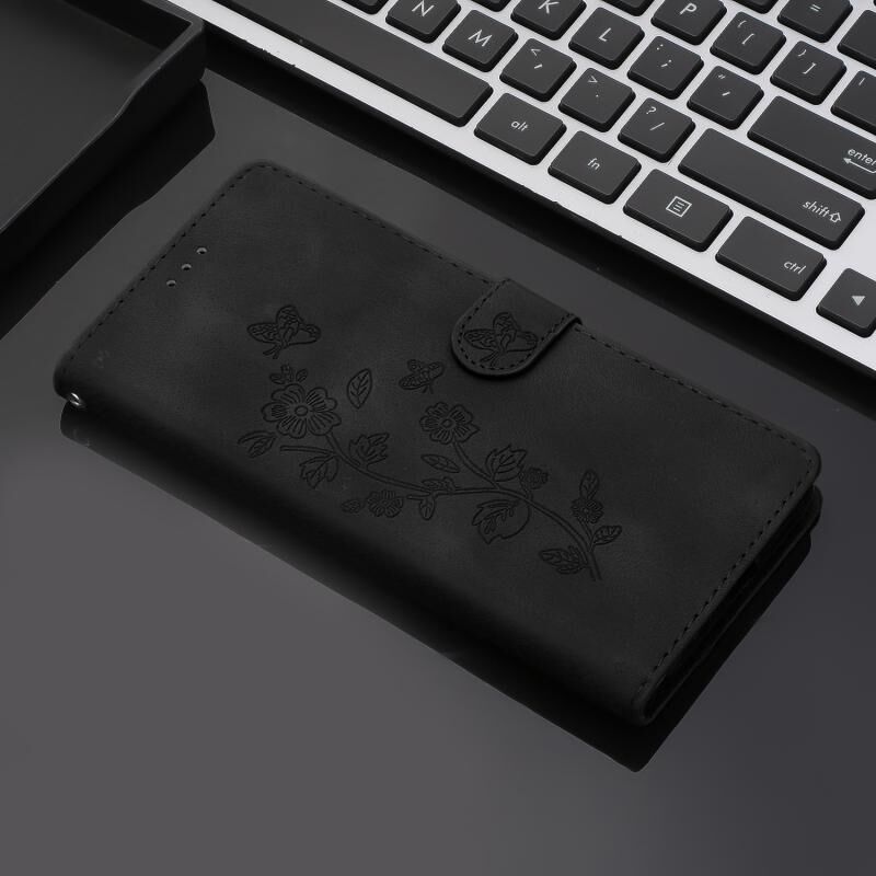 Για Samsung Galaxy S24 Ultra 5G λουλούδι πεταλούδα ανάγλυφο μοτίβο δερμάτινη θήκη τηλεφώνου (Μαύρο)