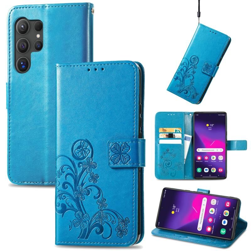 Για Samsung Galaxy S24 Ultra 5G Four-leaf Clasp ανάγλυφη αγκράφα δερμάτινη θήκη τηλεφώνου (μπλε)