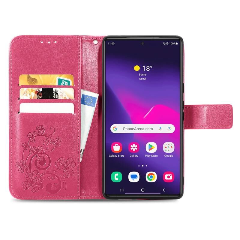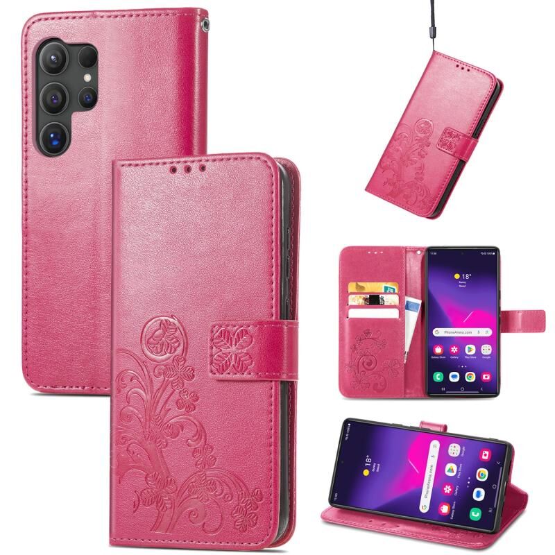 Για Samsung Galaxy S24 Ultra 5G Four-leaf Clasp ανάγλυφη αγκράφα δερμάτινη θήκη τηλεφώνου (Magenta)