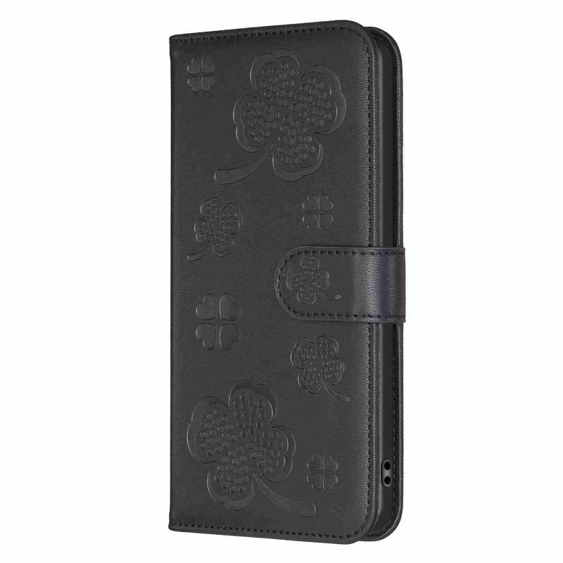 Για Samsung Galaxy S24 Ultra 5G τετράφυλλο ανάγλυφη δερμάτινη θήκη τηλεφώνου (μαύρο)