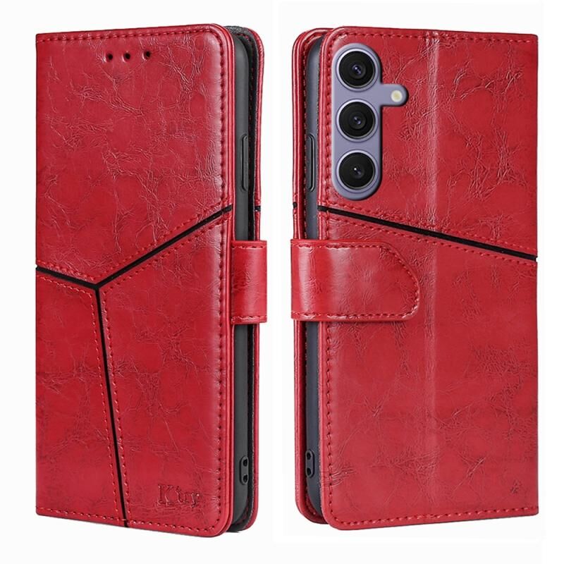 Για Samsung Galaxy S24 Ultra 5G γεωμετρική ραφή δερμάτινη θήκη τηλεφώνου (κόκκινο)