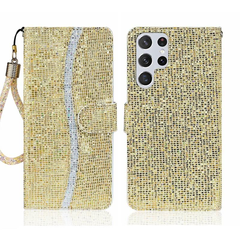 Για Samsung Galaxy S24 Ultra 5G Glitter σκόνη Filp δέρμα τηλέφωνο υπόθεση (Χρυσός)