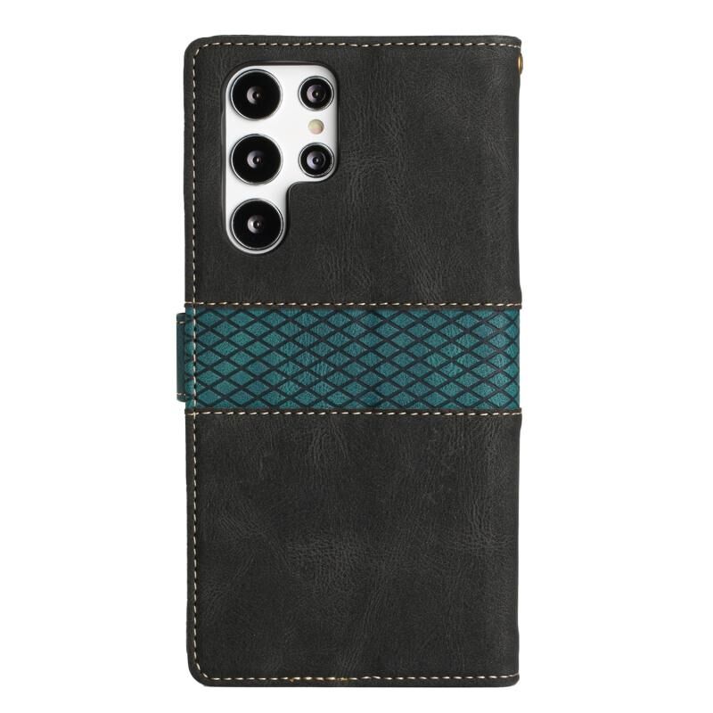Για Samsung Galaxy S24 Ultra 5G Grid Stitching Δερμάτινη θήκη τηλεφώνου με κορδόνι (μαύρο)