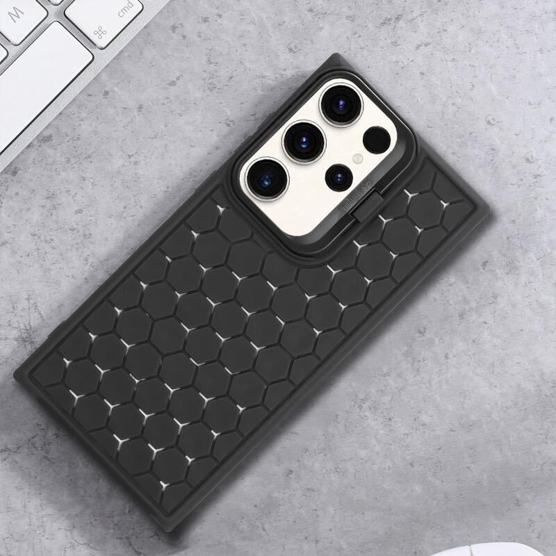Για το Samsung Galaxy S24 Ultra 5G κηρήθρα ακτινοβολία κάτοχος TPU τηλέφωνο υπόθεση με κορδόνι (μαύρο)