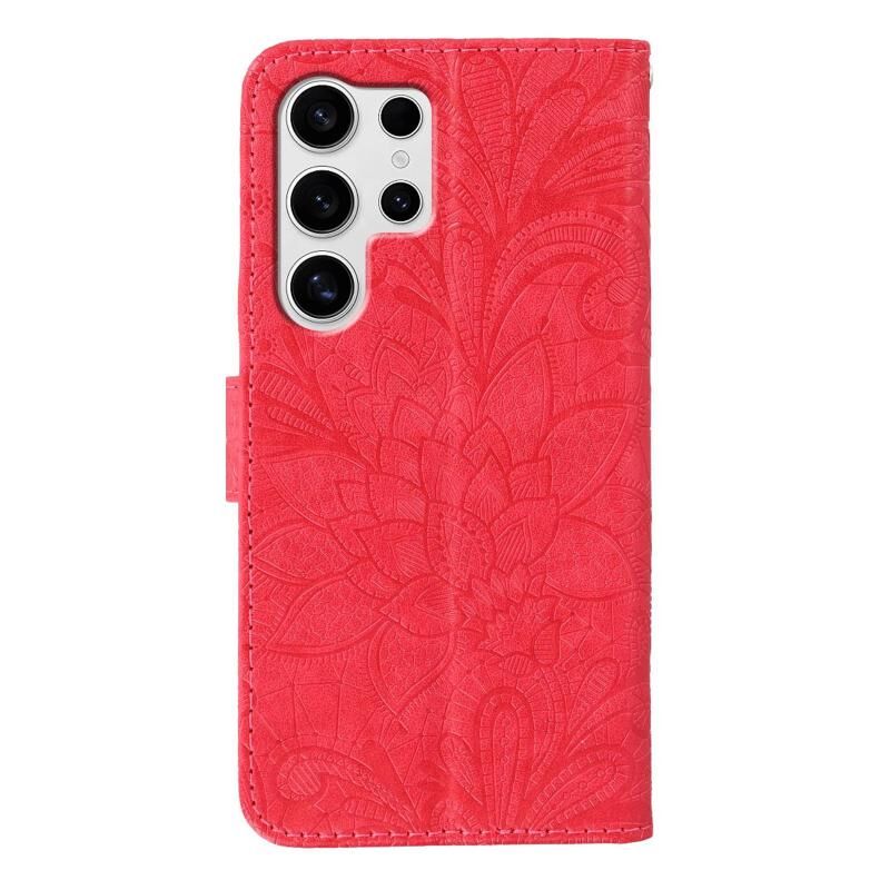 For Samsung Galaxy S24 Ultra 5G Lace Flower Embossing Flip Leather Phone Case(Red)