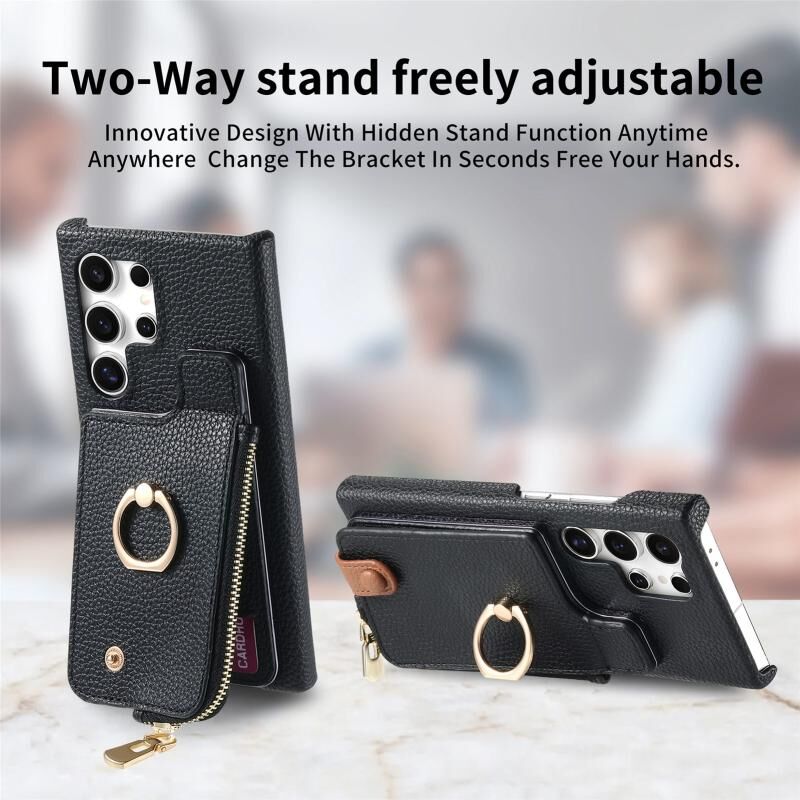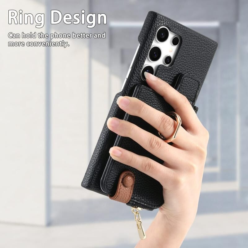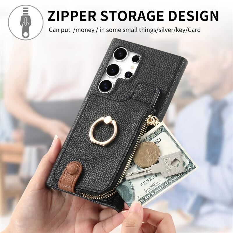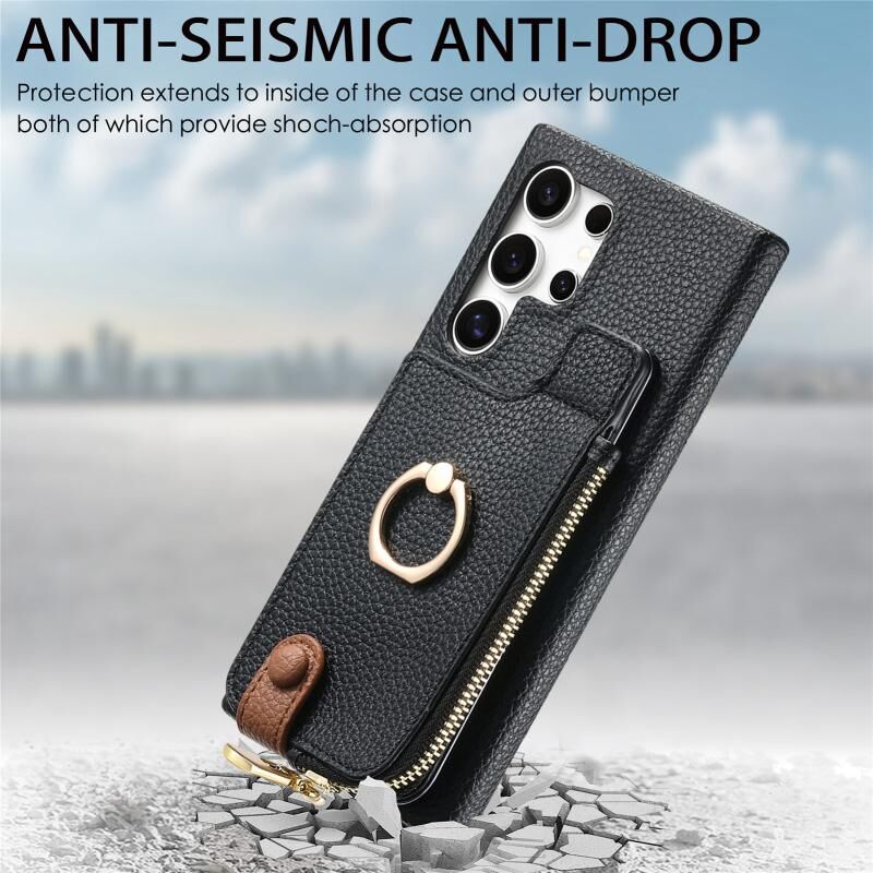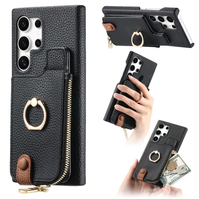 Για Samsung Galaxy S24 Ultra 5G Litchi δέρμα λάδι Edge δαχτυλίδι φερμουάρ πορτοφόλι πίσω υπόθεση τηλεφώνου (μαύρο)