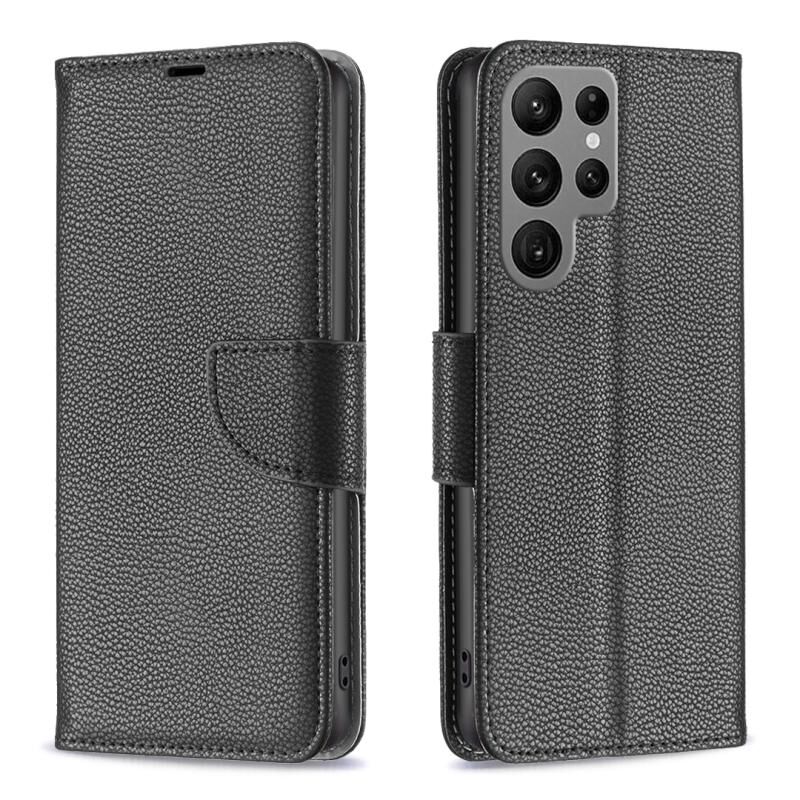 Για το Samsung Galaxy S24 Ultra 5G Litchi υφή καθαρό χρώμα Flip δέρμα τηλέφωνο υπόθεση (μαύρο)