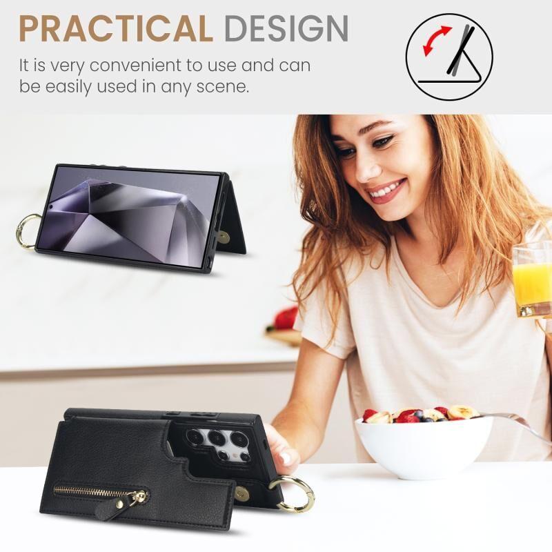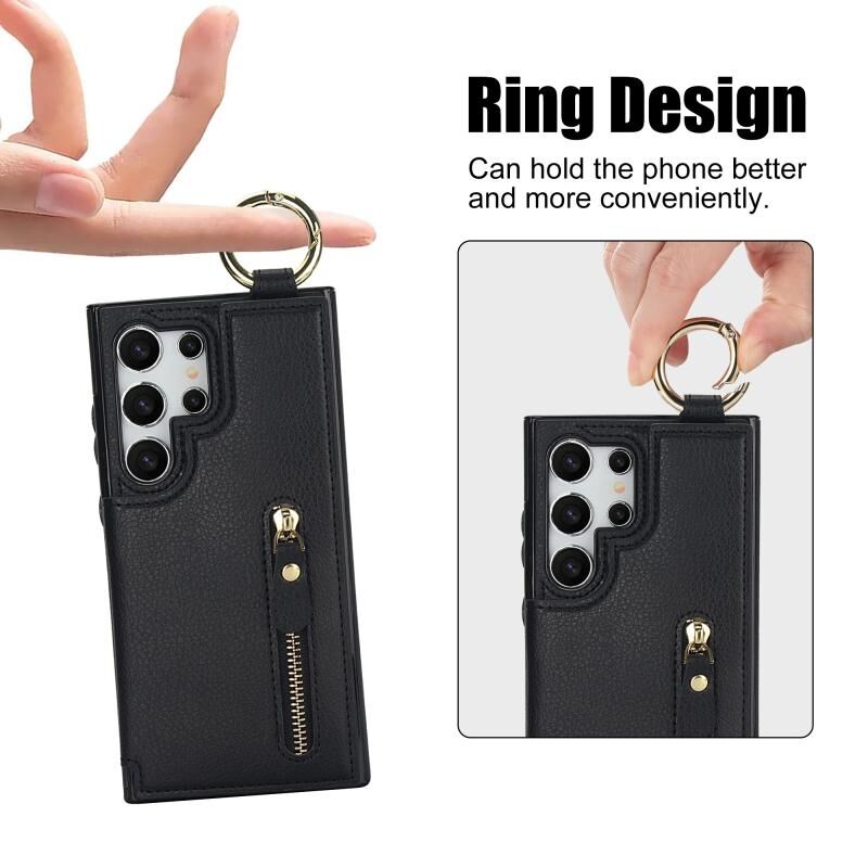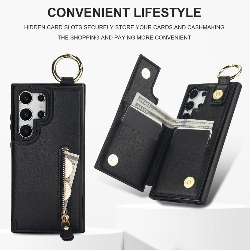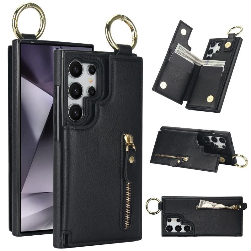Για Samsung Galaxy S24 Ultra 5G Litchi υφή φερμουάρ διπλή πόρπη κάρτα τσάντα υπόθεση τηλεφώνου (μαύρο)