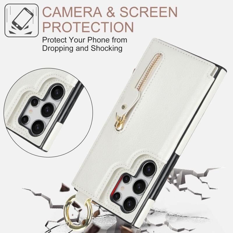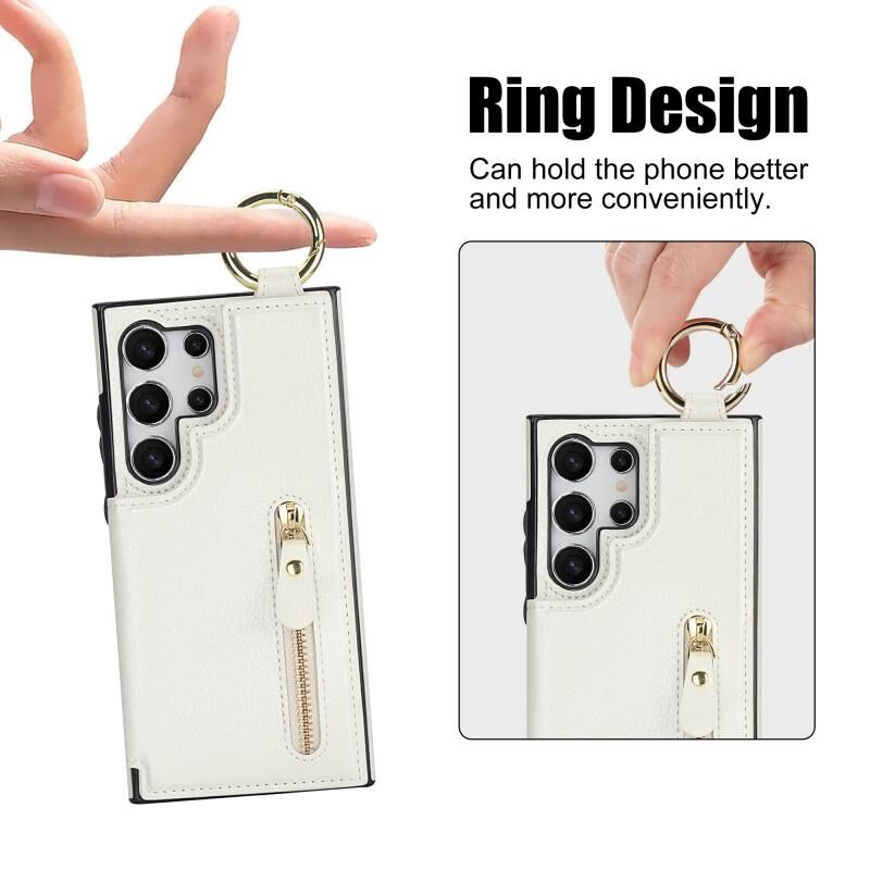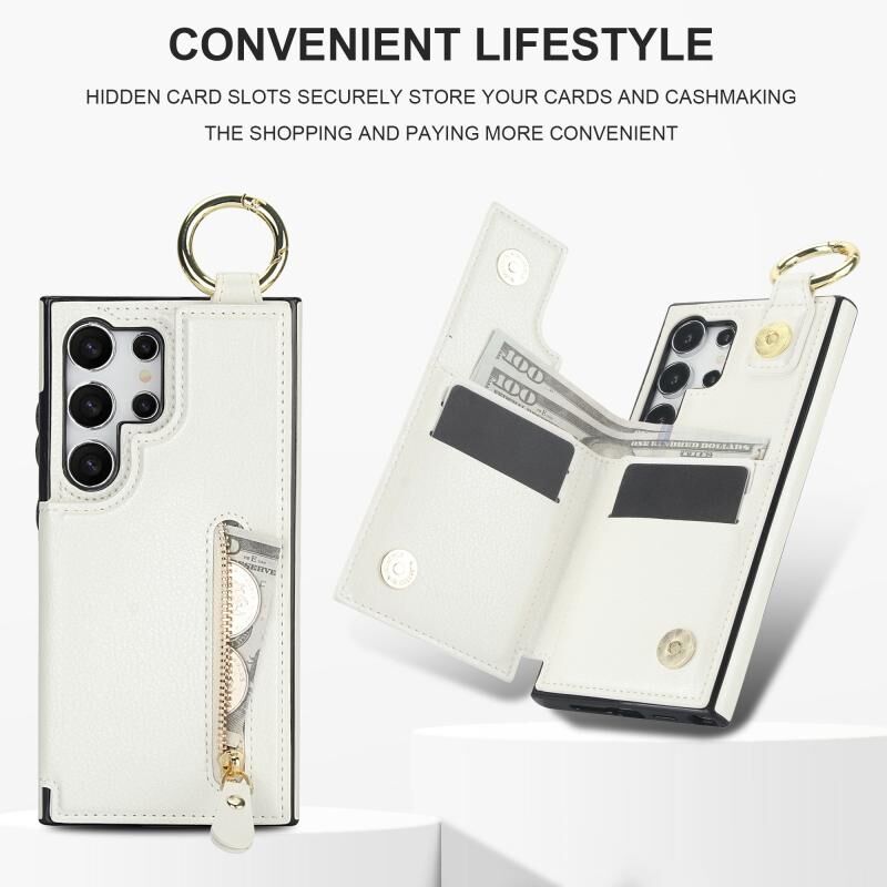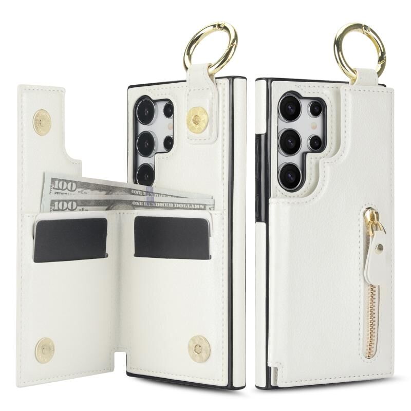 Για Samsung Galaxy S24 Ultra 5G Litchi υφή φερμουάρ διπλή πόρπη κάρτα τσάντα υπόθεση τηλεφώνου (λευκό)