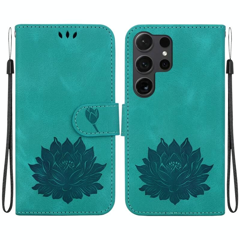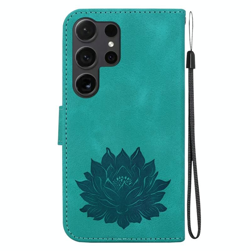 Για Samsung Galaxy S24 Ultra 5G Lotus ανάγλυφη δερμάτινη θήκη τηλεφώνου (πράσινο)