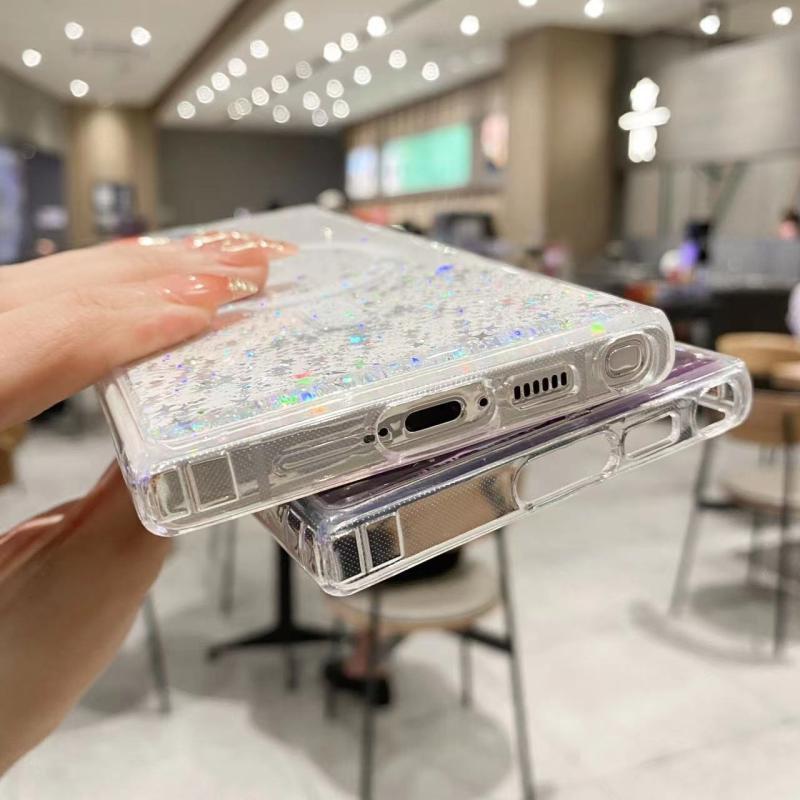 Θήκη κινητού τηλεφώνου Samsung Galaxy S24 Ultra 5G MagSafe Υβριδική Διαφανής TPU με Λάμψη (ρόζ)