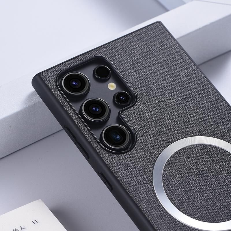 Θήκη τηλεφώνου για Samsung Galaxy S24 Ultra 5G Magsafe Μαγνητικός Δακτύλιος Υφασμάτινη Υφή (Μαύρο)