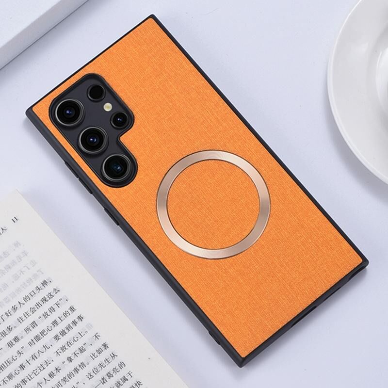 Θήκη κινητού τηλεφώνου Samsung Galaxy S24 Ultra 5G Magsafe Μαγνητικός Δακτύλιος Υφασμάτινη Υφή (Πορτοκαλί)