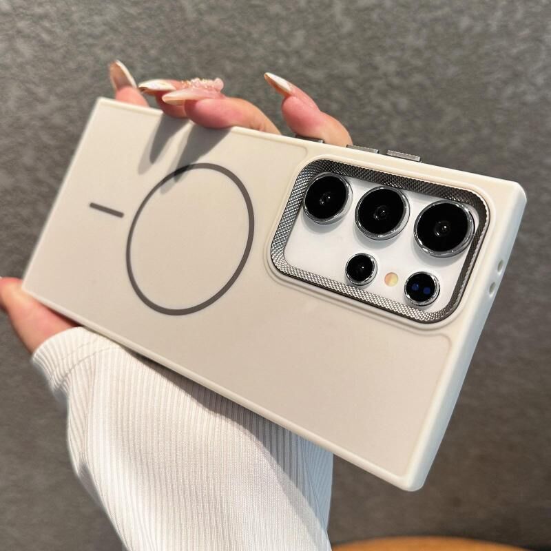 For Samsung Galaxy S24 Ultra 5G Metal Diamond Texture Lens Frame MagSafe Phone Case(White)