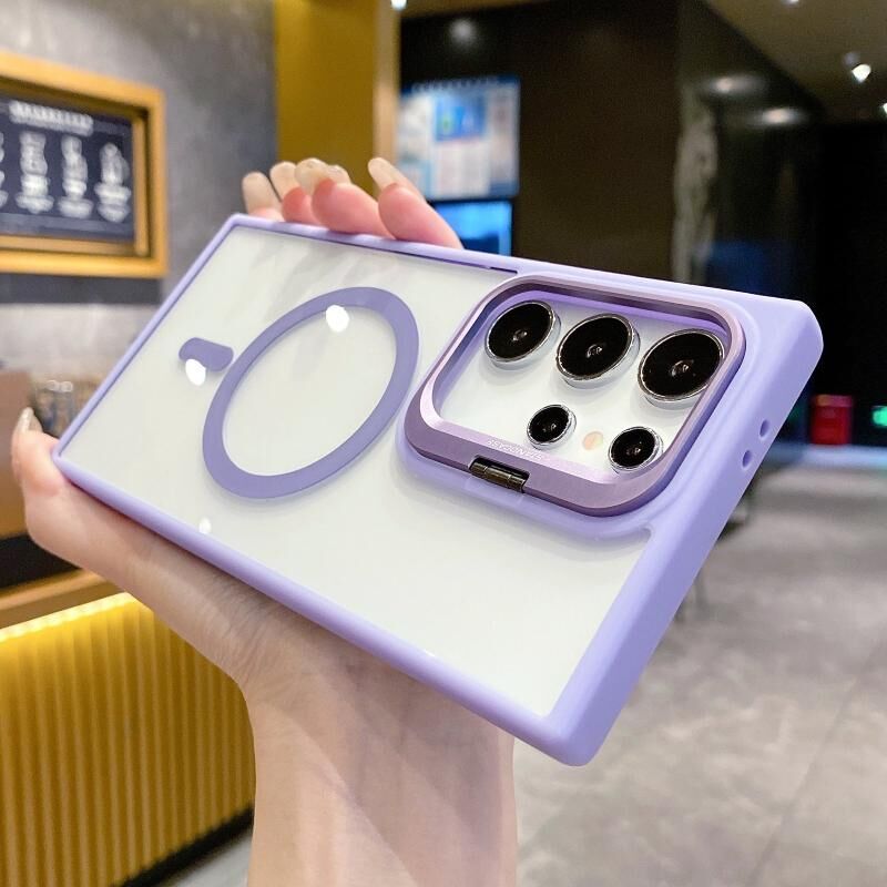 Θήκη τηλεφώνου MagSafe για Samsung Galaxy S24 Ultra 5G με μεταλλική βάση φακού (Μωβ)