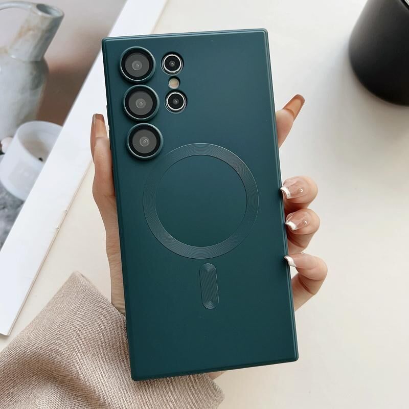 Θήκη κινητού Samsung Galaxy S24 Ultra 5G με μεταλλικό χρώμα, MagSafe και υγρή σιλικόνη TPU (πράσινο)