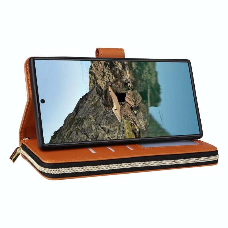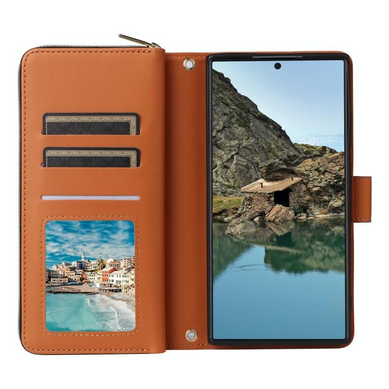 5. Πρακτική λειτουργία θήκης καρτών: Η υποδοχή κάρτας και η τσέπη πορτοφολιού με φερμουάρ και η θήκη μετρητών μπορούν να αποθηκεύσουν τις πιστωτικές σας κάρτες, τα μετρητά ή τα μικρά χαρτονομίσματα που χρειάζεστε καθημερινά.