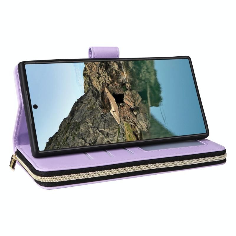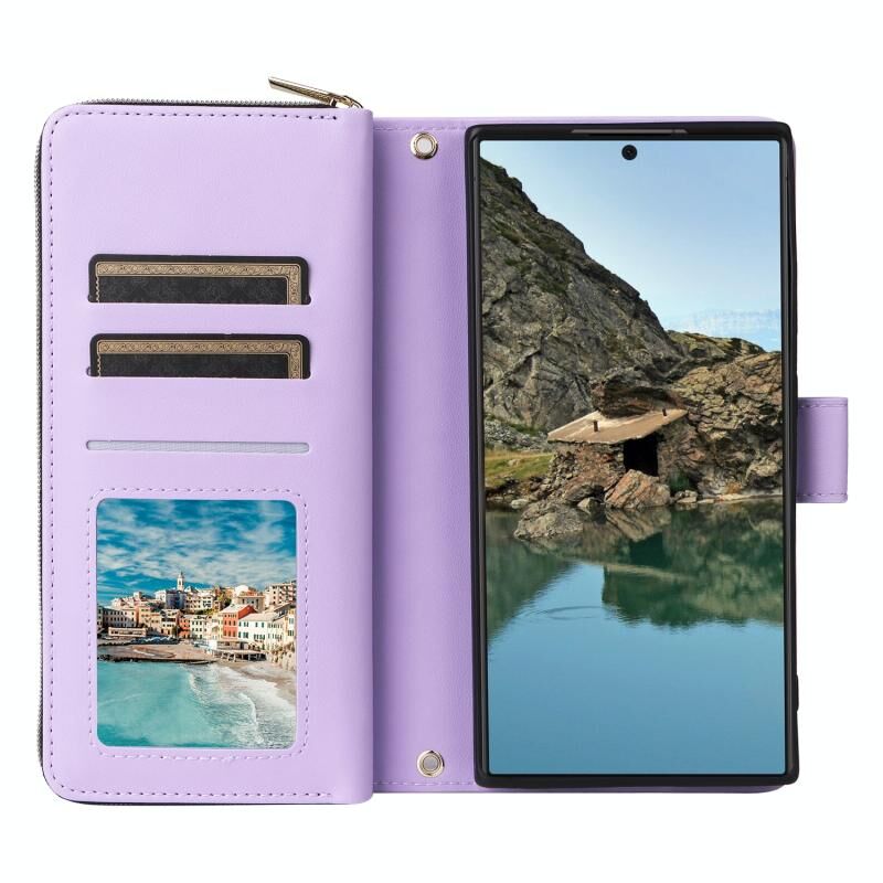 5. Πρακτική λειτουργία θήκης καρτών: Η υποδοχή κάρτας και η τσέπη πορτοφολιού με φερμουάρ και η θήκη μετρητών μπορούν να αποθηκεύσουν τις πιστωτικές σας κάρτες, τα μετρητά ή τα μικρά χαρτονομίσματα που χρειάζεστε καθημερινά.