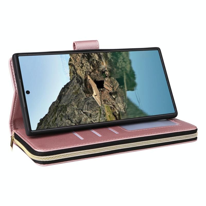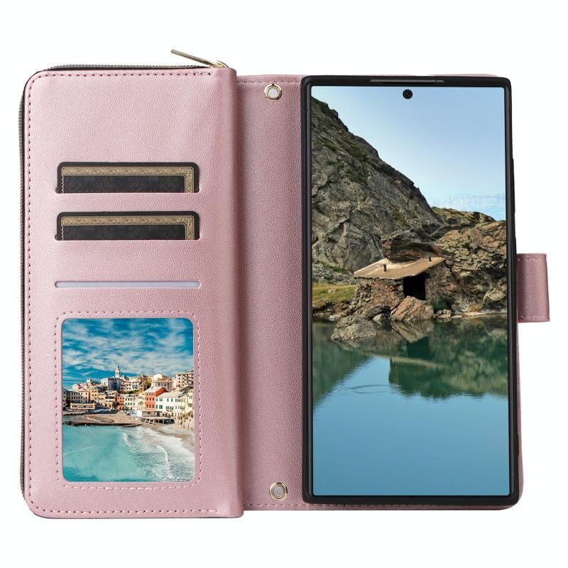 5. Πρακτική λειτουργία θήκης καρτών: Η υποδοχή κάρτας και η τσέπη πορτοφολιού με φερμουάρ και η θήκη μετρητών μπορούν να αποθηκεύσουν τις πιστωτικές σας κάρτες, τα μετρητά ή τα μικρά χαρτονομίσματα που χρειάζεστε καθημερινά.