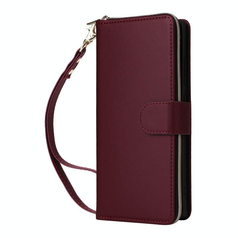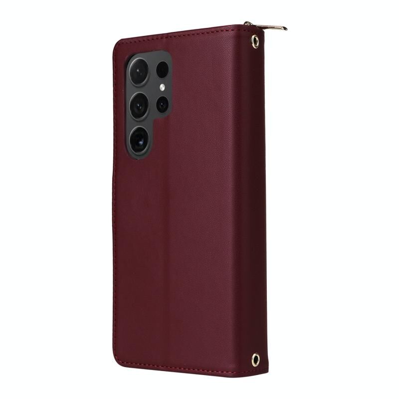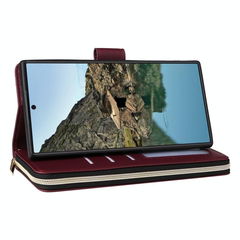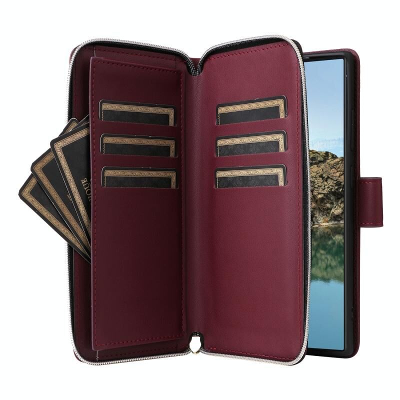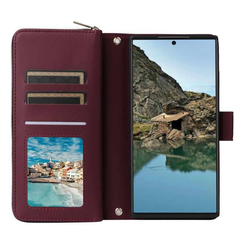 Για Samsung Galaxy S24 Ultra 5G εννέα-κάρτα Slots φερμουάρ πορτοφόλι τσάντα δερμάτινη θήκη τηλεφώνου (κόκκινο κρασί)