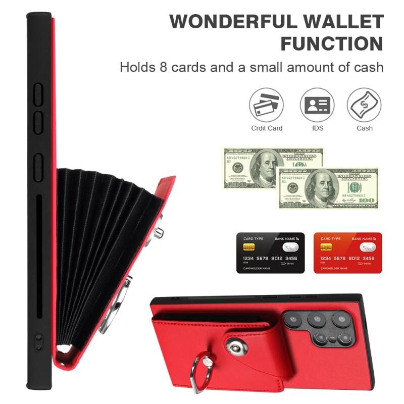 Για Samsung Galaxy S24 Ultra 5G Οργάνου κάρτα τσάντα δαχτυλίδι κάτοχος PU υπόθεση τηλεφώνου με κορδόνι (κόκκινο)
