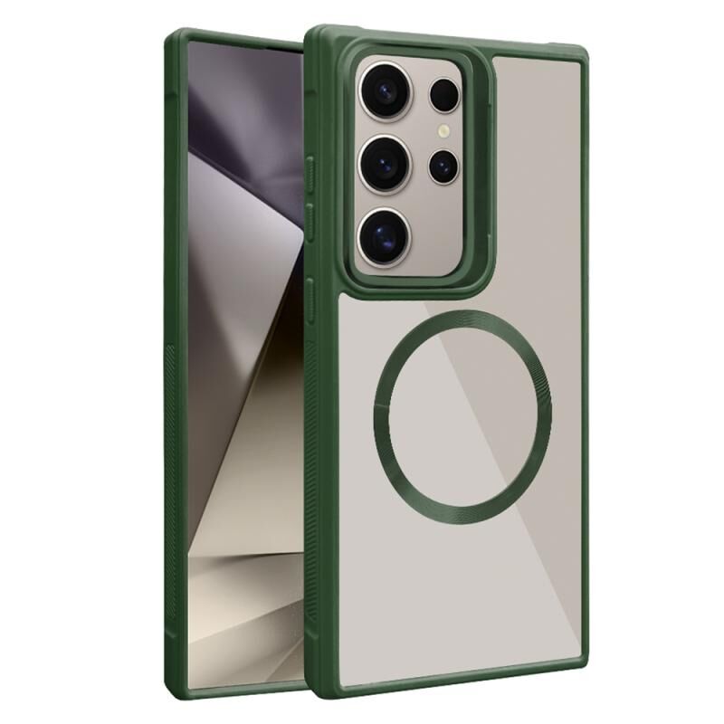 Θήκη τηλεφώνου υβριδική TPU ακρυλικού MagSafe με υφή CD επιμετάλλωσης για Samsung Galaxy S24 Ultra 5G (Γκρι)
