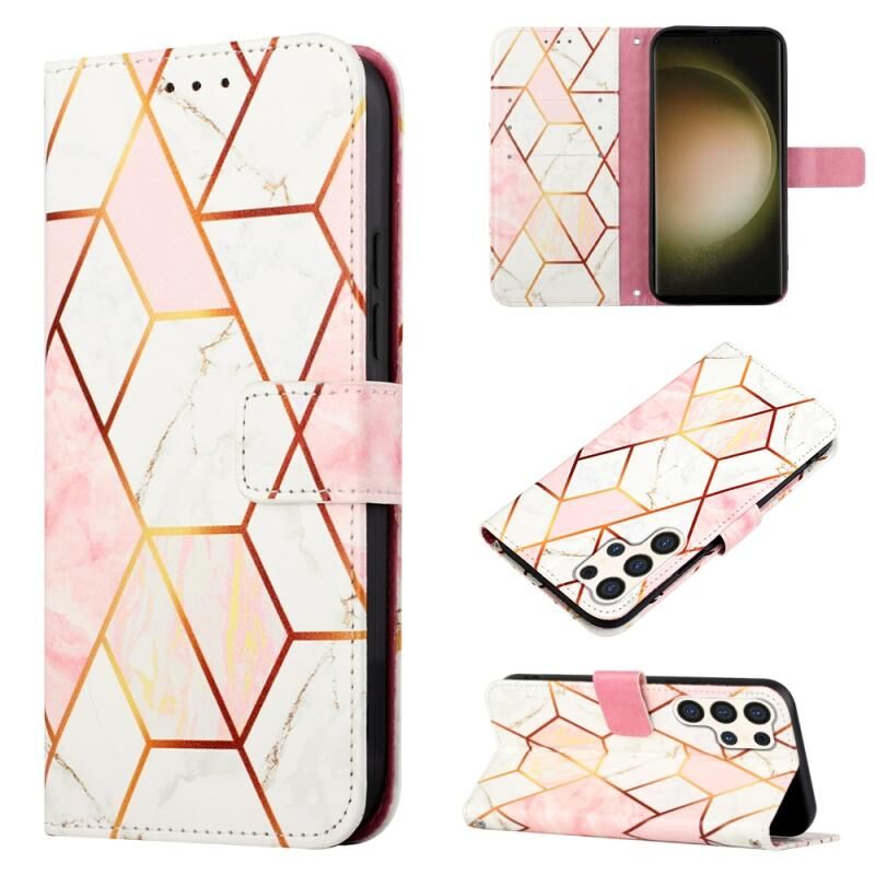 Θήκη τηλεφώνου Samsung Galaxy S24 Ultra 5G PT003 με σχέδιο μάρμαρου, δερμάτινη, αναδιπλούμενη (Ροζ, Μωβ, Χρυσό)