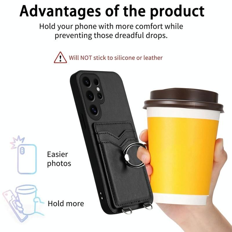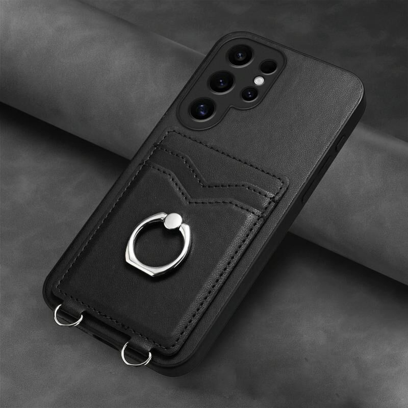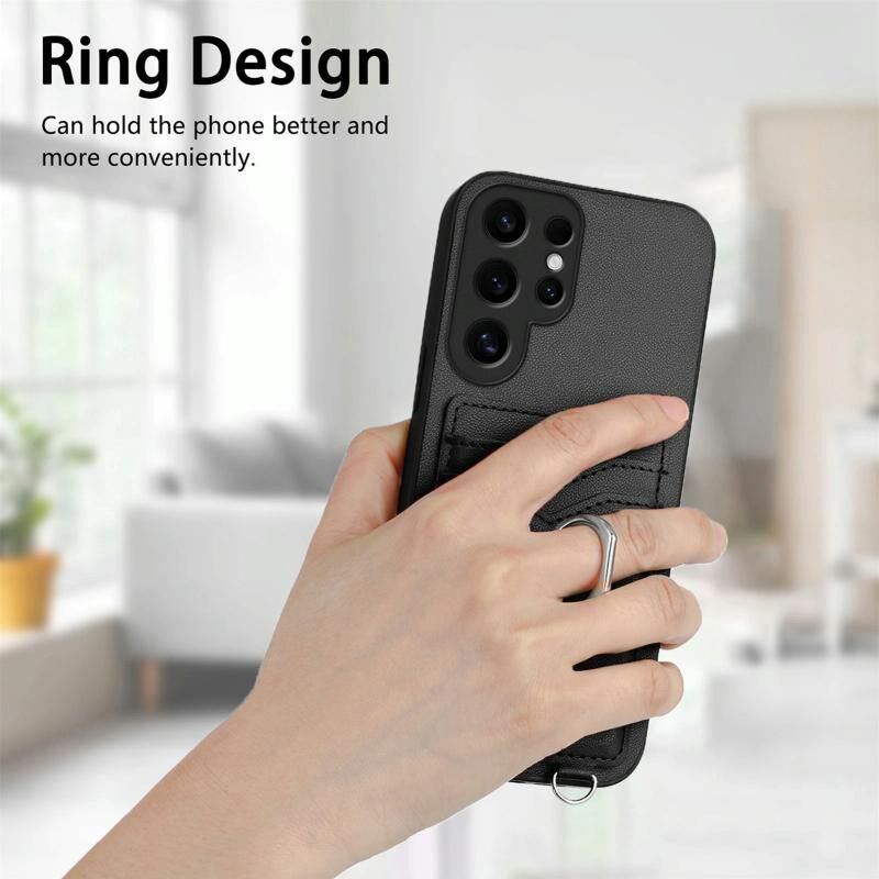 Για το Samsung Galaxy S24 Ultra 5G R20 δαχτυλίδι κάτοχος κάρτας θήκη τηλεφώνου (Μαύρο)