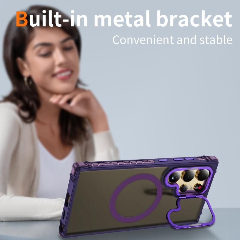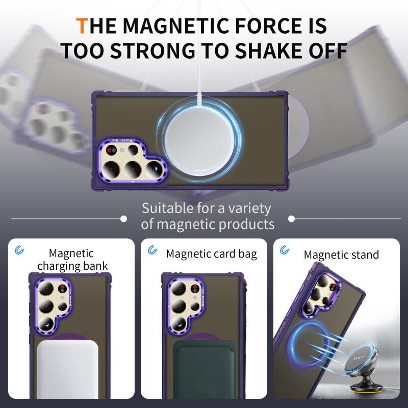 Θήκη τηλεφώνου Samsung Galaxy S24 Ultra 5G Rainbow Series με αίσθηση δέρματος, μαγνητική βάση MagSafe και προστατευτικό φακού (Σκούρο μωβ)