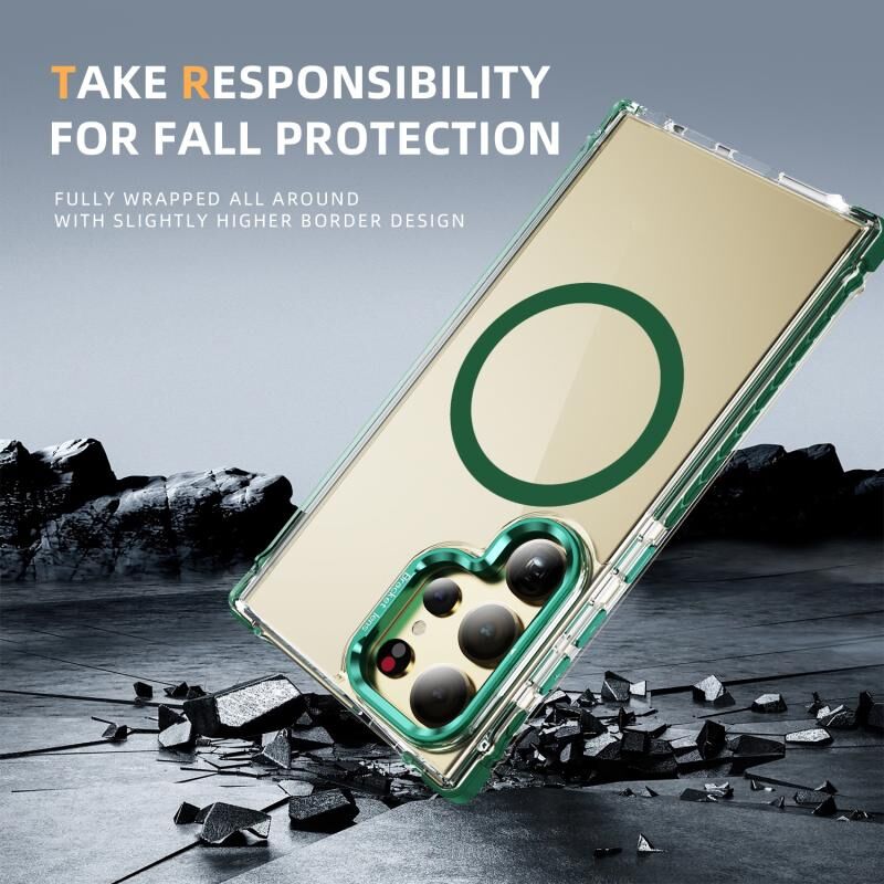 Θήκη τηλεφώνου για Samsung Galaxy S24 Ultra 5G Rainbow Series Διαφανής με Μαγνητική Υποδοχή Φακού (Μαύρο)