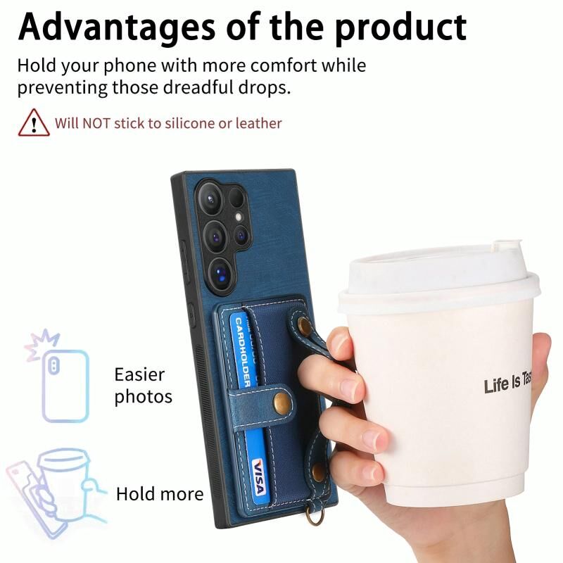 Για Samsung Galaxy S24 Ultra 5G Retro Cross Wristband πορτοφόλι δέρμα πίσω υπόθεση τηλεφώνου (μπλε)