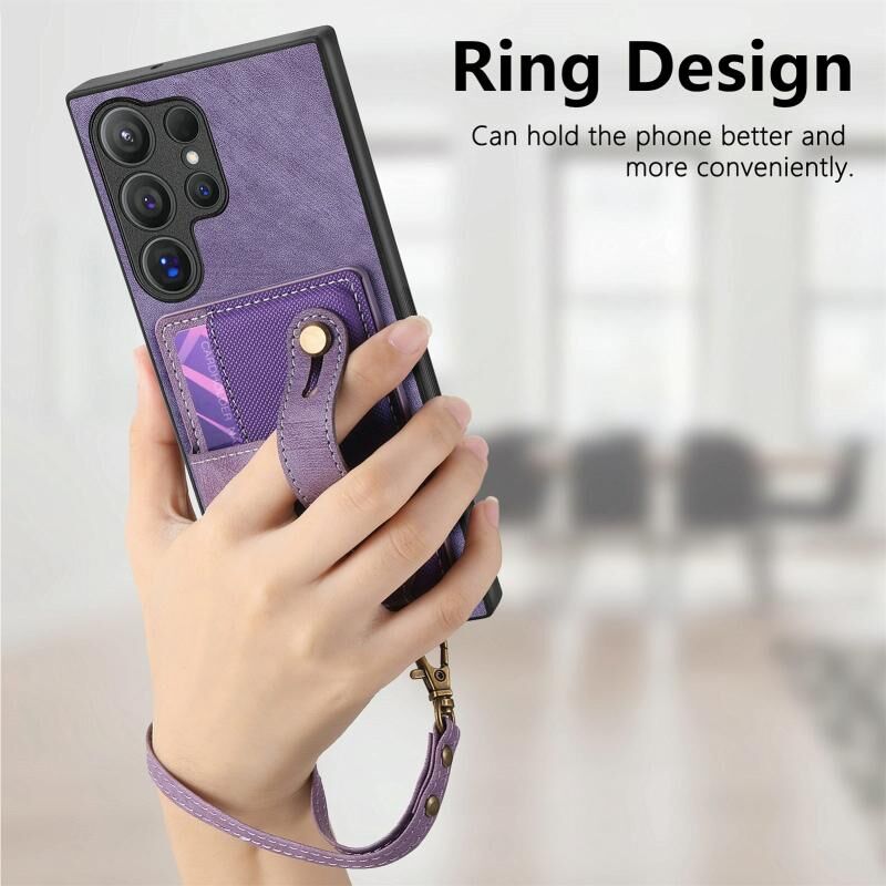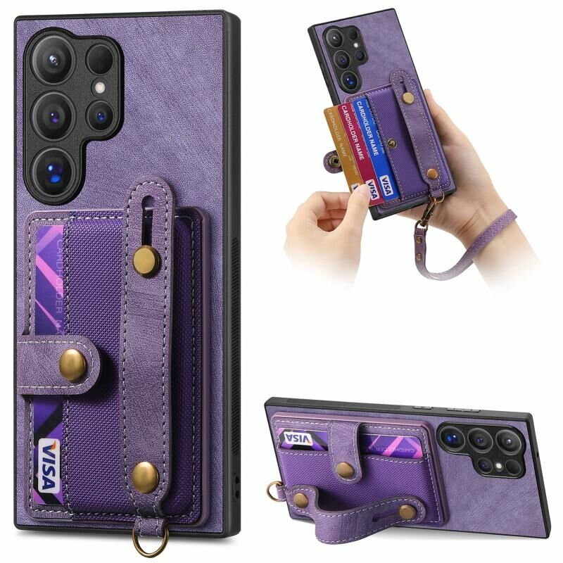 Για Samsung Galaxy S24 Ultra 5G Ρετρό σταυρό Wristband πορτοφόλι δέρμα πίσω τηλέφωνο υπόθεση (μωβ)