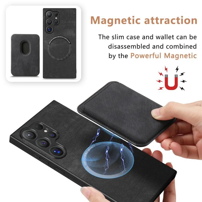 Για Samsung Galaxy S24 Ultra 5G ρετρό δερμάτινη κάρτα τσάντα τσάντα μαγνητική θήκη τηλεφώνου (Μαύρο)