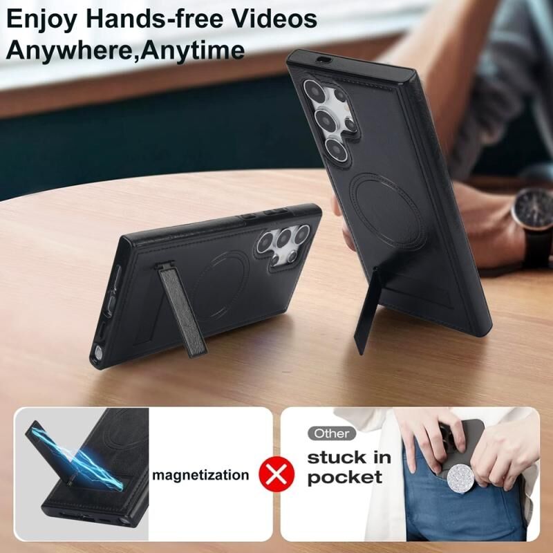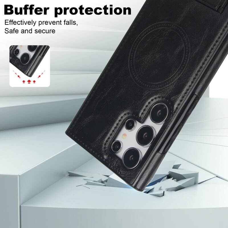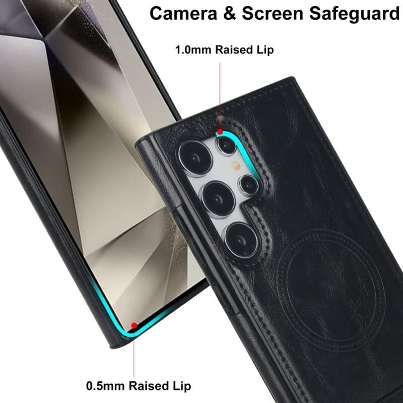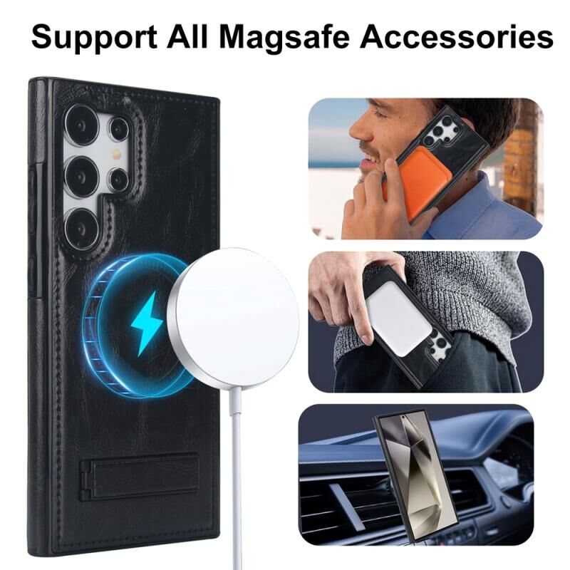 Θήκη τηλεφώνου Samsung Galaxy S24 Ultra 5G από δέρμα retro με αόρατο στήριγμα και MagSafe (Λευκό)