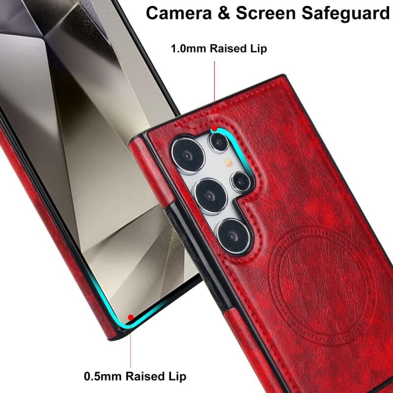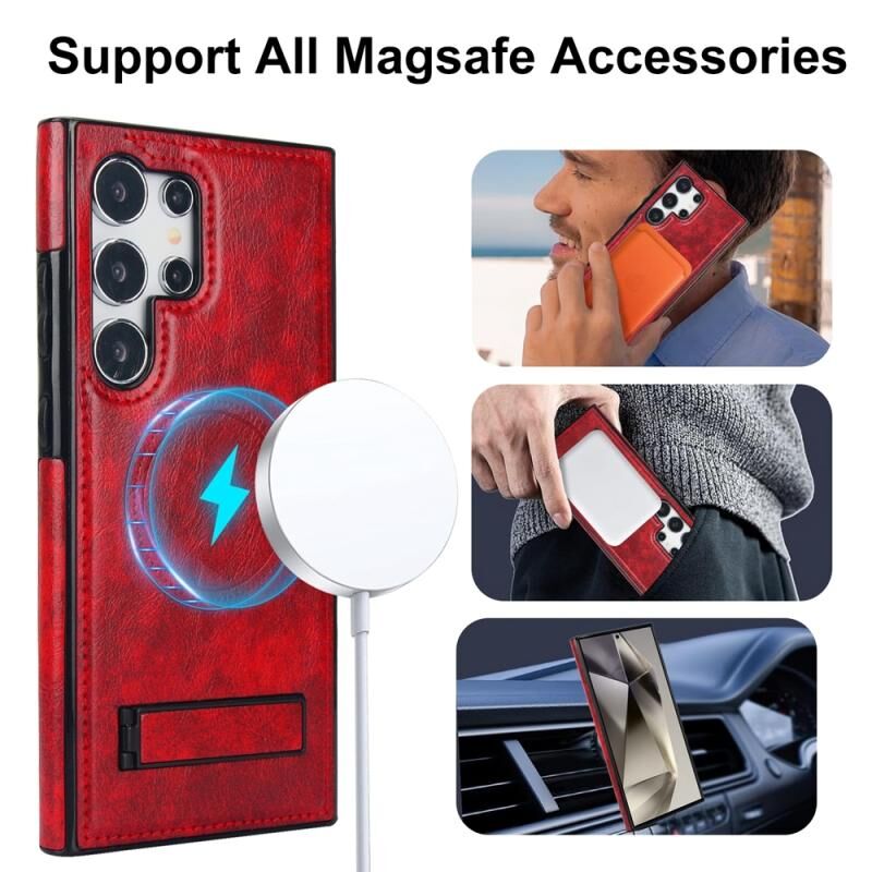 Θήκη τηλεφώνου Samsung Galaxy S24 Ultra 5G από δέρμα retro με αόρατο στήριγμα και MagSafe (Λευκό)