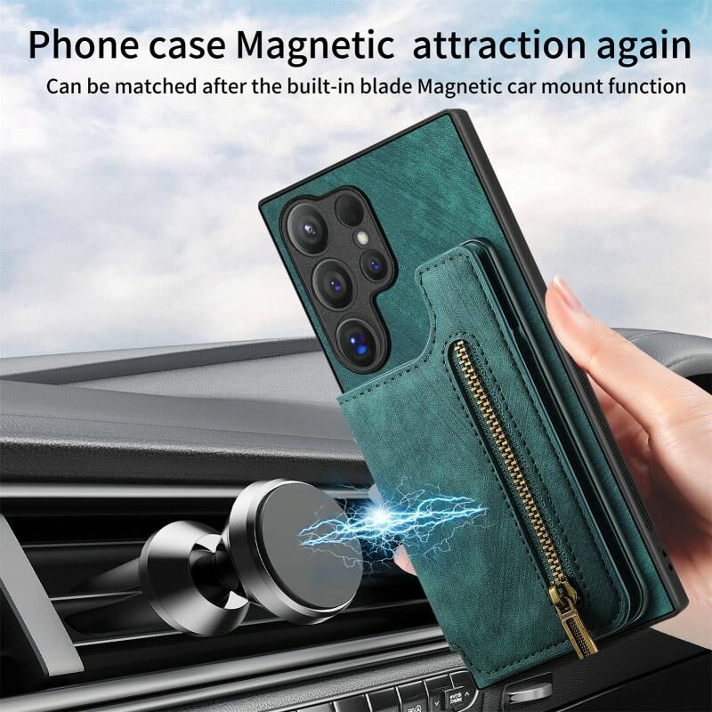 Για Samsung Galaxy S24 Ultra 5G Retro δέρμα φερμουάρ πορτοφόλι πίσω θήκη τηλεφώνου (πράσινο)