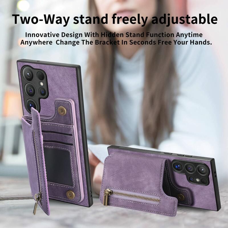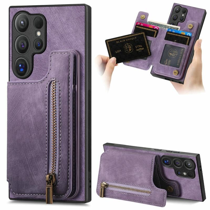 Για Samsung Galaxy S24 Ultra 5G Retro δέρμα φερμουάρ πορτοφόλι πίσω υπόθεση τηλεφώνου (μωβ)