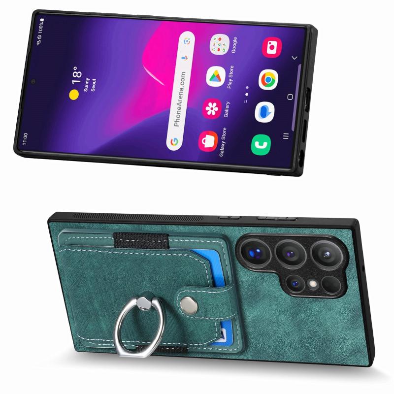 For Samsung Galaxy S24 Ultra 5G Retro Skin-feel Ring Card Wallet Phone Case(Green)