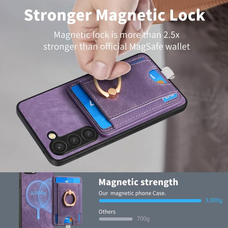 5. Το δερμάτινο πορτοφόλι διαθέτει ισχυρούς ενσωματωμένους μαγνήτες που του επιτρέπουν να κουμπώνει αβίαστα στη θέση του στο πίσω μέρος του τηλεφώνου σας, εύκολο στη χρήση και την αφαίρεση.