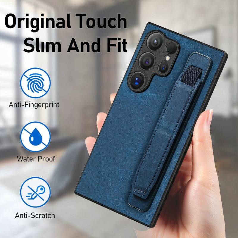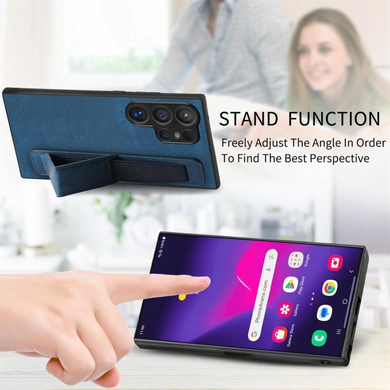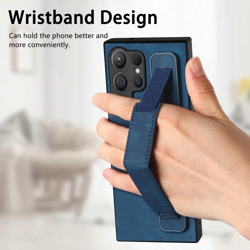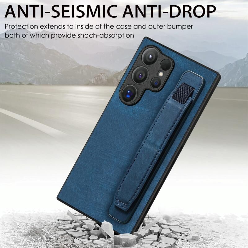 Για Samsung Galaxy S24 Ultra 5G Retro Wristband κάτοχος δέρμα πίσω τηλέφωνο υπόθεση (μπλε)