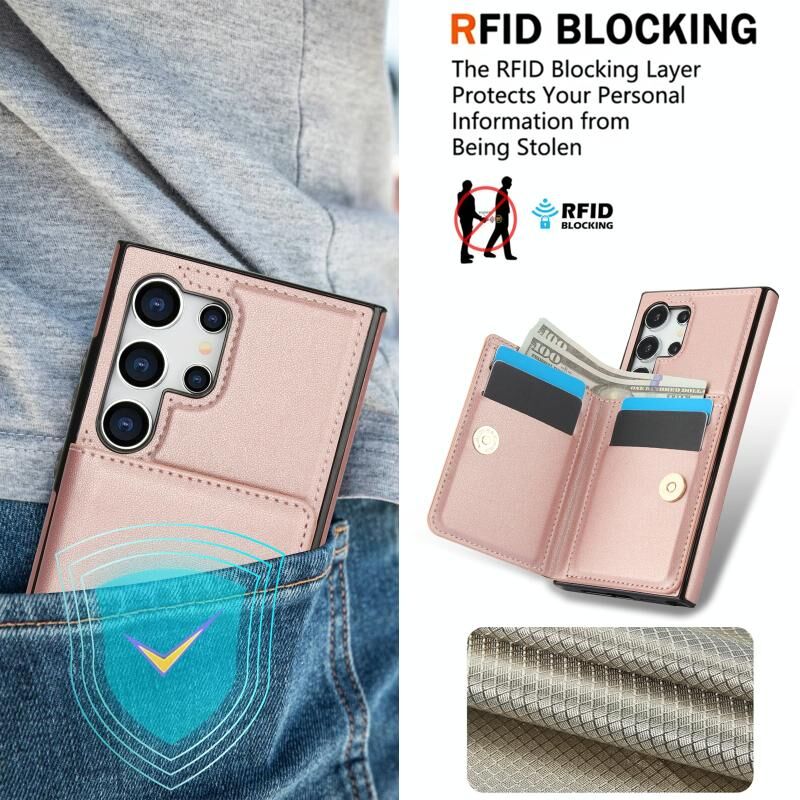 Για Samsung Galaxy S24 Ultra 5G RFID Anti-theft κάρτα δαχτυλίδι κάτοχος τηλέφωνο υπόθεση (Ροζ χρυσός)