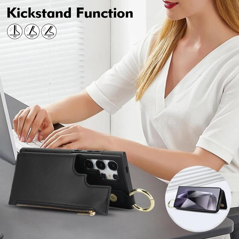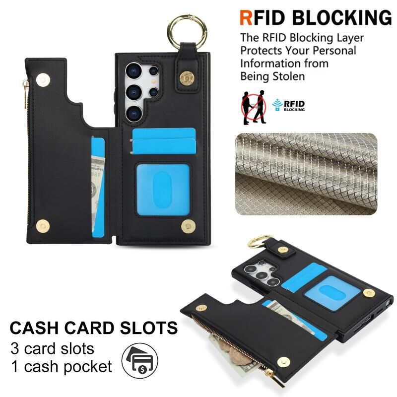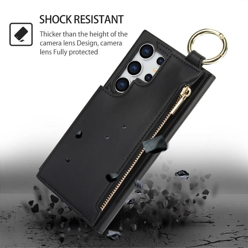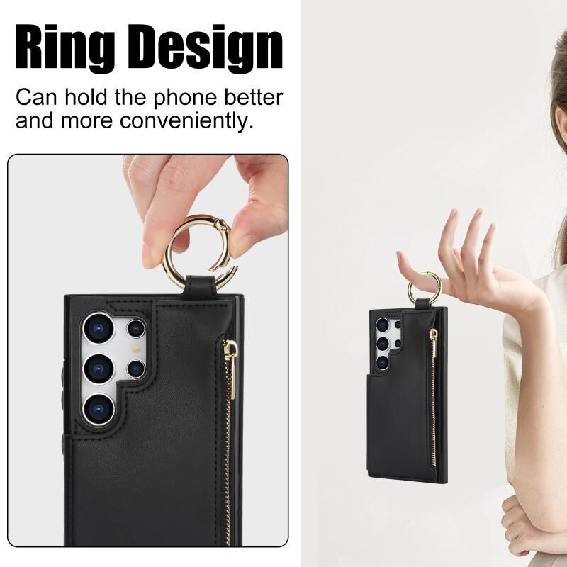 Για Samsung Galaxy S24 Ultra 5G RFlD Anti-theft Διπλό πόρπη δαχτυλίδι φερμουάρ τηλέφωνο υπόθεση κάρτα (Μαύρο)