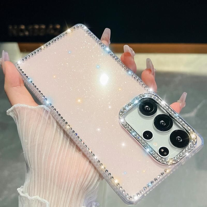 For Samsung Galaxy S24 Ultra 5G Rhinestone Glitter TPU 4-corners Anti-fall Phone Case(Light Pink)