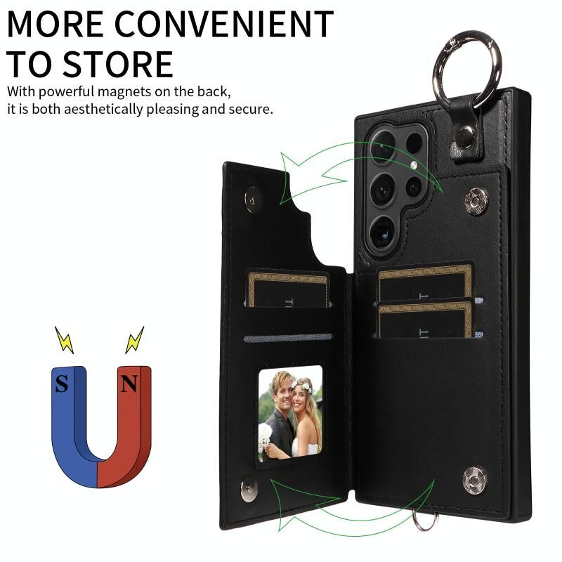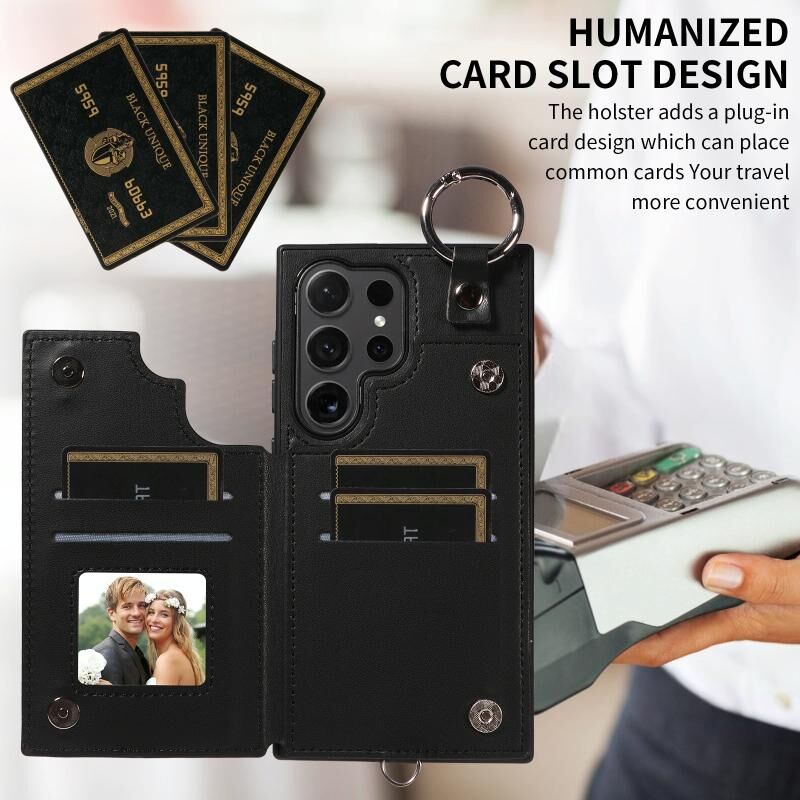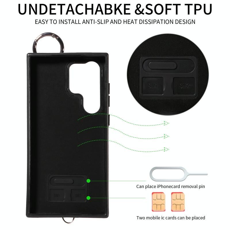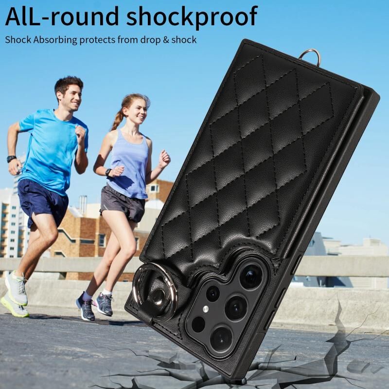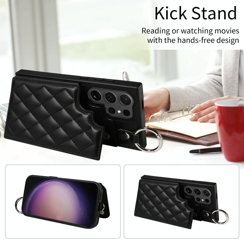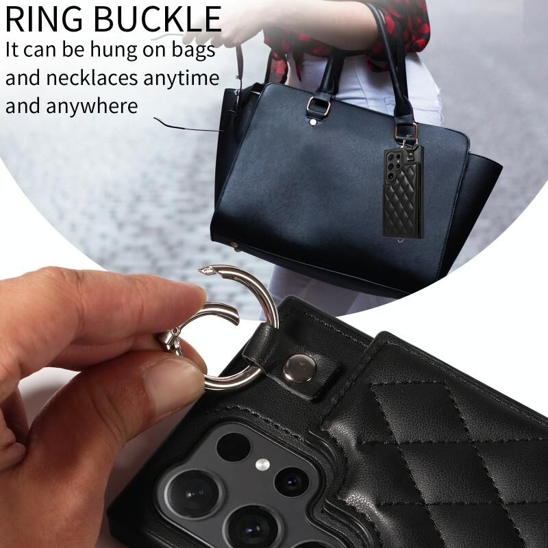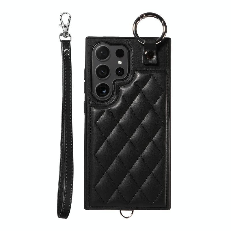 Για το Samsung Galaxy S24 Ultra 5G Rhombic υφή κάρτα τσάντα υπόθεση τηλεφώνου με σύντομο κορδόνι (μαύρο)
