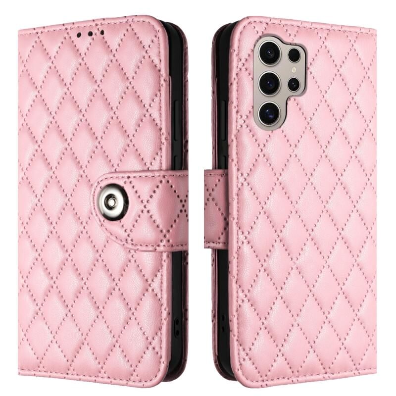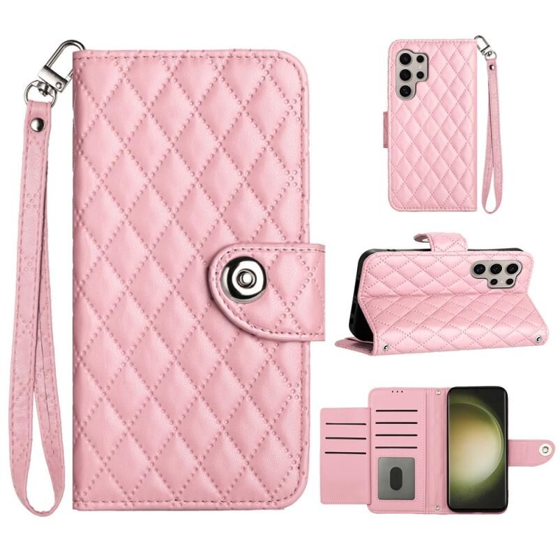 Για Samsung Galaxy S24 Ultra 5G Rhombic Texture Flip δερμάτινη θήκη τηλεφώνου με κορδόνι (ροζ)