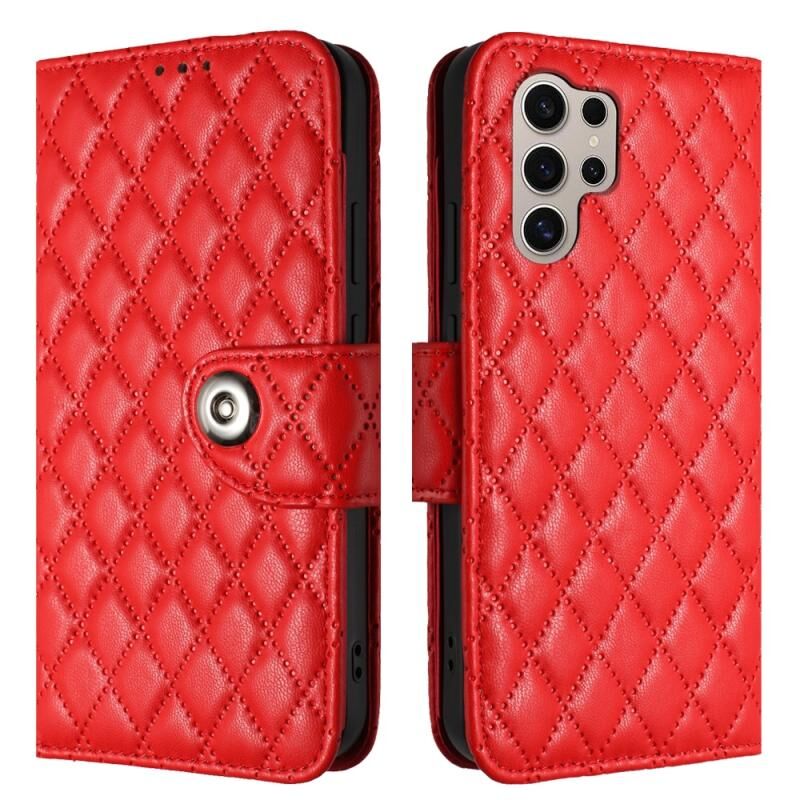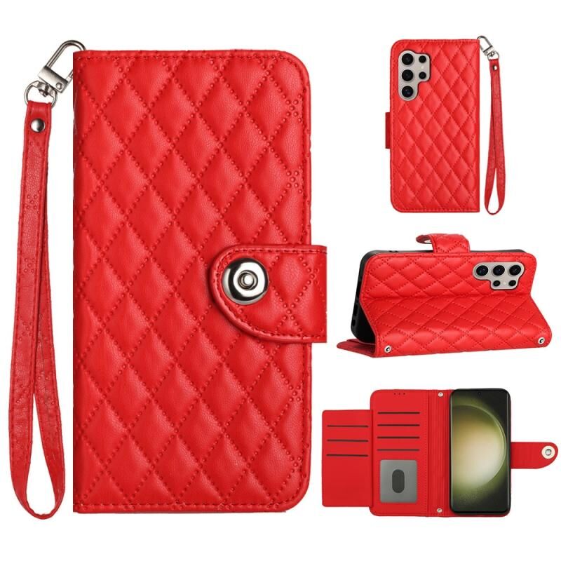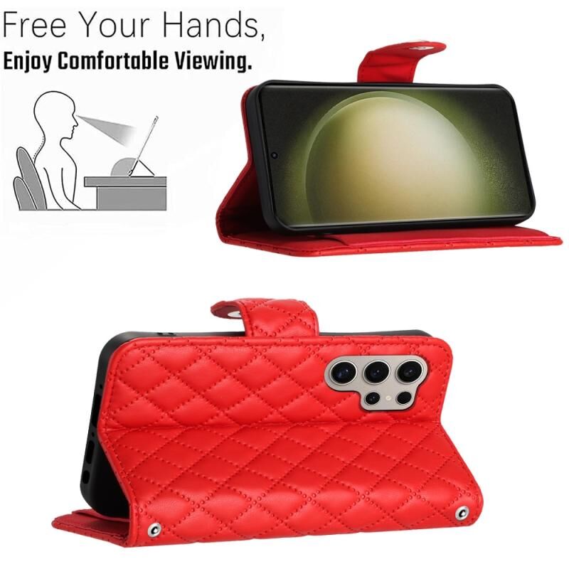 Για Samsung Galaxy S24 Ultra 5G Rhombic Texture Flip δερμάτινη θήκη τηλεφώνου με κορδόνι (κόκκινο)