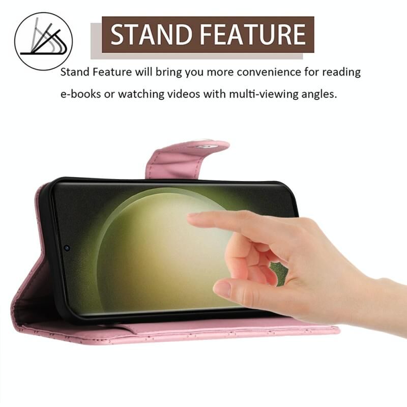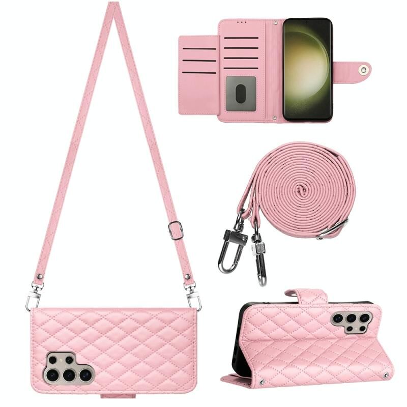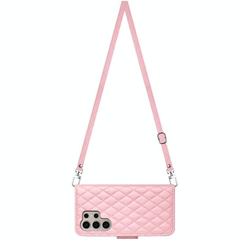 Για Samsung Galaxy S24 Ultra 5G Rhombic υφή Flip δερμάτινη θήκη τηλεφώνου με μακρύ κορδόνι (ροζ)