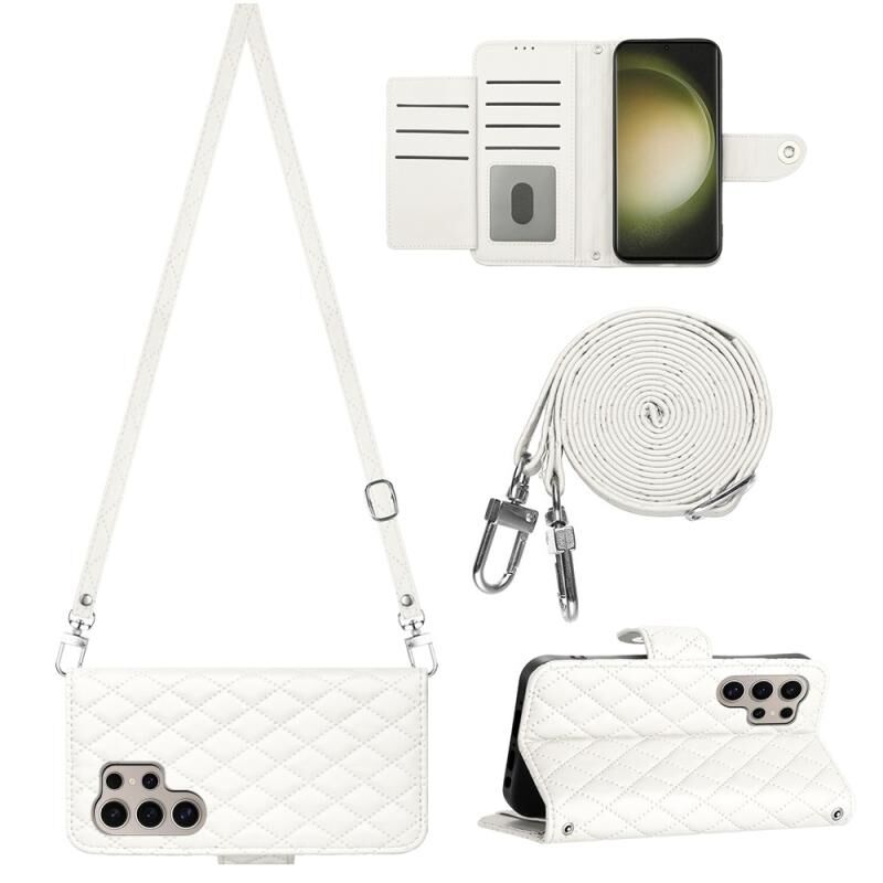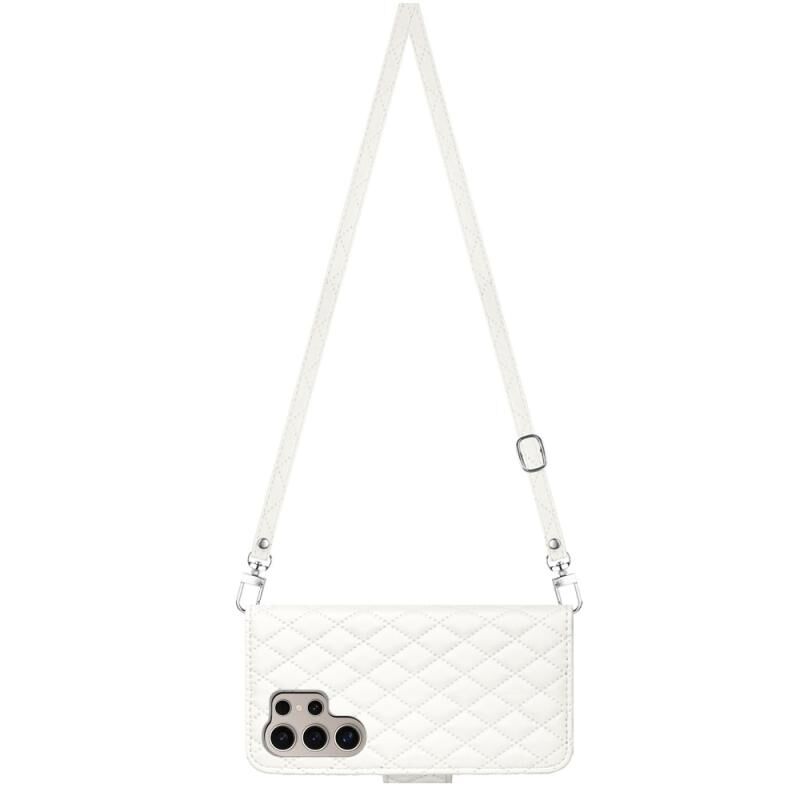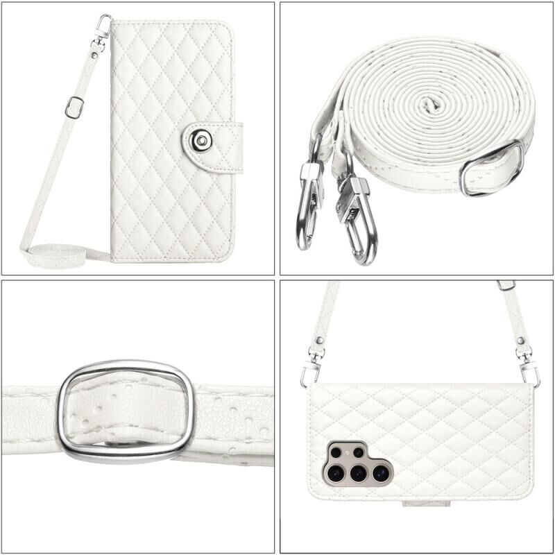 Για Samsung Galaxy S24 Ultra 5G Rhombic Texture Flip δερμάτινη θήκη τηλεφώνου με μακρύ κορδόνι (λευκό)
