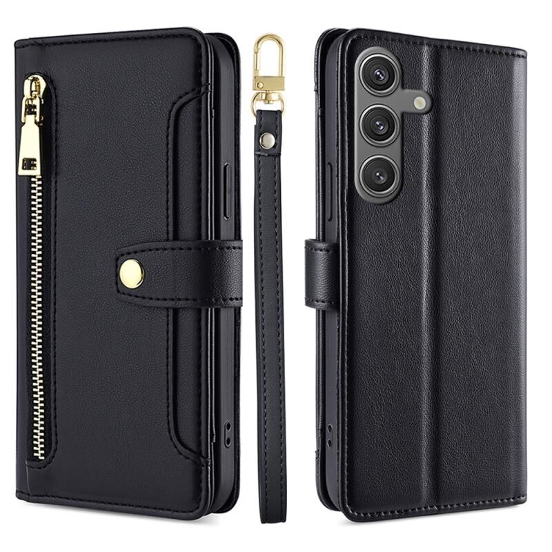 Για Samsung Galaxy S24 Ultra 5G Πρόβατα υφή Cross-body φερμουάρ πορτοφόλι δερμάτινη θήκη τηλεφώνου (Μαύρο)